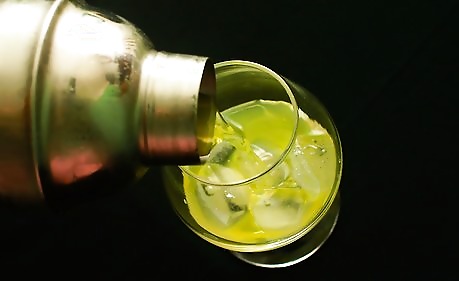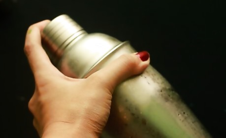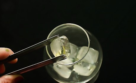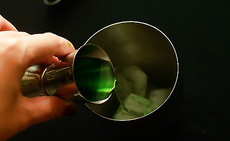 Prepare the cocktail shaker by adding some ice cubes in it.