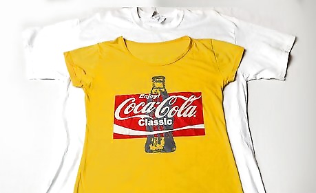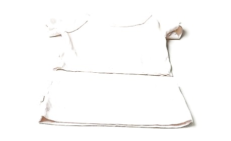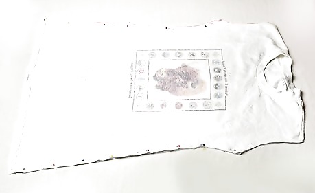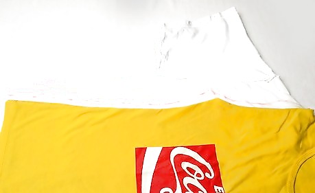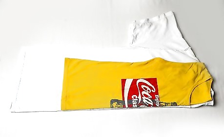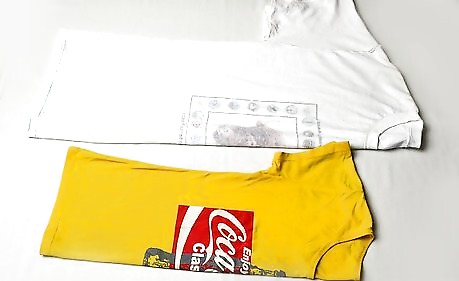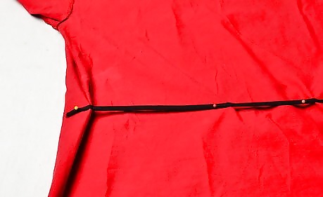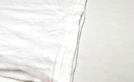 Unfold the shirt and pin the edges. Keep the right sides facing in as you pin along the two side edges. Do not pin along the armholes or sleeve ends.