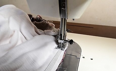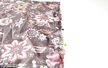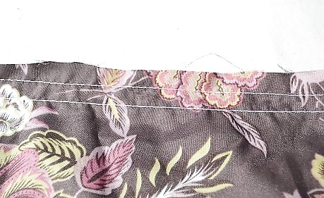 Sew two rows of basting stitches across the top of your fabric. The first row should be ½ inch (1.27 centimeters) away from the top edge, and the second row should be ¾ inch (1.91 centimeters) away from the top edge. You can make a basting stitch by using a long stitch length and a low/loose stitch tension. You will eventually be pulling these threads out, so the color does not matter. In fact, a contrasting color will help you find them later on.