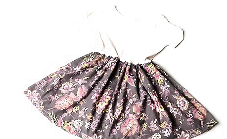 Choose your shirt and skirt material. This style of dress has a bodice and a gathered skirt. Choose a fitted T-shirt that fits you well without stretching too much. Next, choose a material for the skirt. You can use matching cotton fabric, jersey fabric, or a large, baggy T-shirt. The colors and patterns can match, or they can be different. For an interesting look, try a solid-colored shirt with pattered cotton for the skirt.