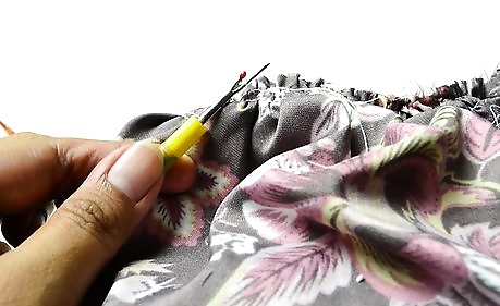 Pull out the gathering threads. Remember those threads that you used to gather your skirt? Now is the time to pull them out. Find the ends, and pull on them until the threads come out.