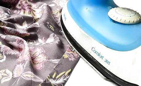 Fold and press the bottom edge of the dress twice to make the hem. Fold the bottom edge of the dress up by ½ inch (1.27 centimeters), all the way around. Press it with an iron. Fold it up by another ½ inch (1.27 centimeters) and press it again. Insert some sewing pins, if necessary.