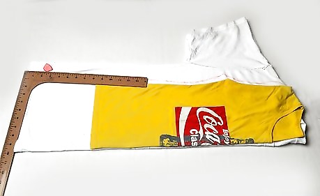 Extend the line to the bottom corner of the large shirt. Place a long ruler or straight edge on top of your large shirt. Angle it so that it connects with the bottom corner of the fitted shirt and the bottom corner of the large shirt. Draw along that line, then remove the ruler.