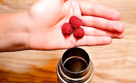 Muddle the lime juice with the raspberries in a cocktail shaker. This allows the flavors of the raspberries to come out and combine with the lime juice.