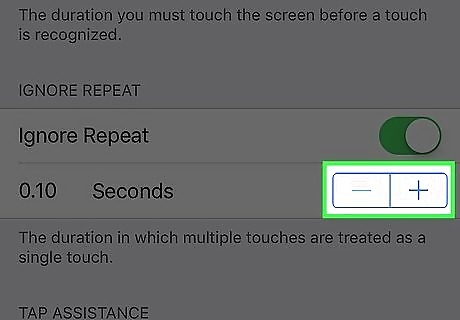 Adjust the hold duration time. To do this, tap + to increase the amount of time it takes for a touch to activate, or tap - to decrease the amount of time.