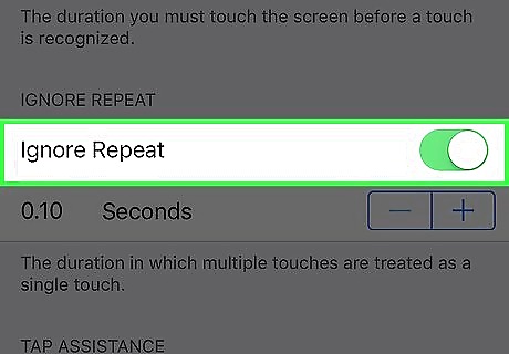 Slide the Ignore Repeat button right to the "On" position. Ignore Repeat ignores all but the first of multiple taps if they fall within a certain time parameter (e.g., 0.50 seconds).