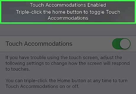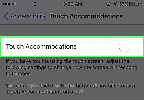Slide the Touch Accommodations button right to the "On" position. It should turn green.