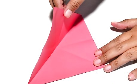 Rotate the paper from top to bottom. Take one flap on the right side and then fold it upward diagonally so that it aligns with vertical center and repeat the same on the left side and then move right flap to the left. Repeat the same thing with the remaining six flaps.