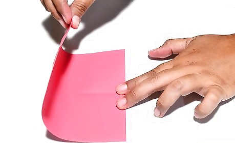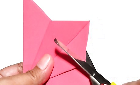 Use the scissors to and cut out the two triangles that are jutting out from the paper. You should cut straight across. Next, turn the paper over and repeat the previous fold and cutting process.