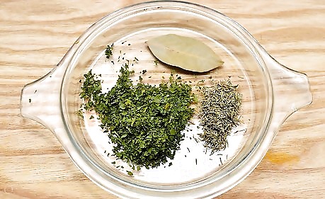 Gather dried herbs. Mix 1 tablespoon (14.8 ml) parsley, 1 teaspoon thyme, 2-3 peppercorns and 1 bay leaf.