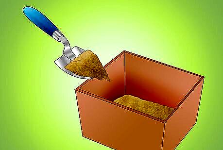 Scoop a layer of potting soil into the bin. Begin by adding a few scoops of potting soil to your compost bin - enough to create a layer a few inches (a few cm) deep. Potting soil is helpful for composting indoors because it helps regulate the moisture level of the mixture, which can prevent insect infestation or unpleasant odors. Do not use soil collected from outdoors instead of potting soil. If you intend to use the finished compost for houseplants, the consistency and drainage ability of the soil will be compromised if you introduce outdoor soil.