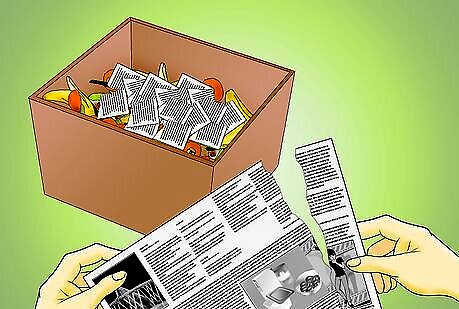 Add torn newspaper to your compost bin. Each time you add kitchen scraps to the compost pail, you'll need to add a handful of shredded newspaper or cardboard as well. The nitrogen-rich kitchen scraps balance with the carbon-rich newspaper to create a balanced environment for bacteria.