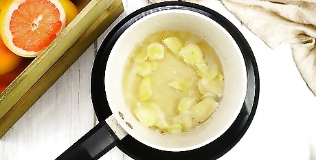 Put the ginger, honey, and water in a saucepan. Place the sliced ginger into a small saucepan on the stove. Pour in 1 cup (240 ml) of water and 2 tablespoons (29.6 ml) (42 g) of honey. You could use your favorite sweetener, such as agave, granulated sugar, or stevia, instead of honey.