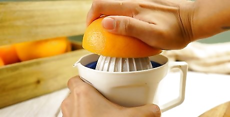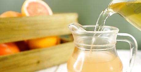 Squeeze the juice from 3 grapefruits and 4 lemons. Rinse the citrus fruits and put them on a cutting board. Carefully slice each fruit in half and push the halves against a manual or electric juicer. If you're using an electric juicer, place a bowl under the spout to catch the juice. Feel free to adjust the ratio of grapefruit and lemons. If you prefer a stronger grapefruit flavor, use 4 grapefruits and 2 or 3 lemons, for instance.