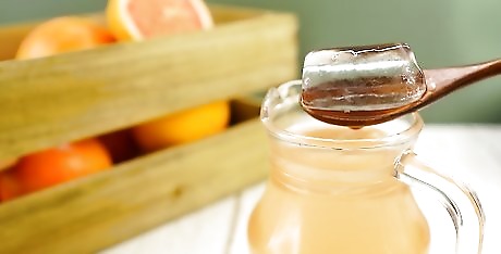 Stir in sugar or honey for sweeter grapefruit juice. Grapefruit juice can be very sour on its own. To make the juice sweeter, stir in as much sugar or honey as you like. For a natural sweetener, you could also mix in enough apple juice or pear juice to cut the sour flavor.Tip: It can be difficult to dissolve sugar in cold grapefruit juice. To sweeten the juice easily, mix in simple syrup, which you can make by heating equal parts of sugar and water until the sugar dissolves. Refrigerate leftover grapefruit juice in an airtight container in the refrigerator for up to 3 days.