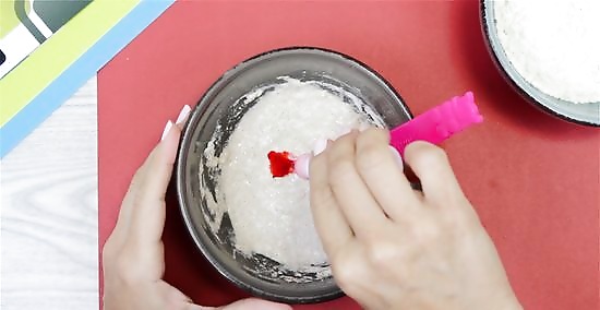 Add food coloring. Use a few drops of food coloring to dye the mixtures in the different bowls. Stir each one well so that the color gets fully incorporated.