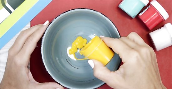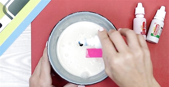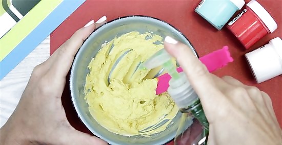 Add food coloring. Stir a few drops of food coloring into the different bowls.
