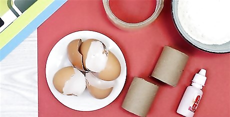 Mix the base. Mix two parts flour to one part eggshell in a bowl. Add water a little at a time until you've created a thick paste. Separate the mixture into as many bowls as you want, depending on how many colors you want to make.