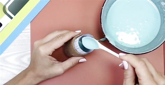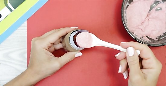 Pour the chalk mixtures into molds. Use a spoon to help you transfer the chalk mixtures into individual molds. Cover the molds with wax paper.