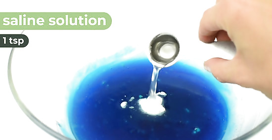 Mix in the baking soda and contact solution. Next, stir in 1/2 tsp (0.5 g) of baking soda and 1 tsp (5 mL) of saline contact solution into the bowl. Stir with a fork or whisk to combine everything. Keep in mind that saline solution contains borate, so this recipe will have a small amount of borax. However, many households have contact solution in them, so this ingredient might be easier to come by than borax.