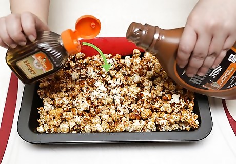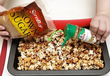 Try a decadent brown sugar-cinnamon glaze. To make this delicious variation, put 2/3 cups (160ml) brown sugar, 1/2 teaspoon cinnamon, and 3 tablespoons butter in a bowl and microwave for 30 seconds, until hot. Cook the popcorn like normal and, right before pouring it out to cool, pour the hot butter mixture over the popcorn and stir quickly. Cool like normal. Note -- the butter mixture should still be hot when poured, so don't be afraid to reheat it for 10-15 seconds if needed.