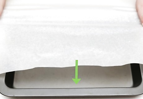 Line a baking sheet with parchment paper. As you do, keep an ear out for your test kernels to pop -- this is your indication to start cooking.