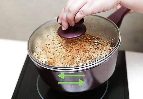 Stir all of the ingredients to coat and quickly replace the lid. The hot oil is only half of the cooking equation -- you also need the steam to help pop your corn. Mix everything up so the sugar and oil are well-distributed around the kernels and then replace the lid.