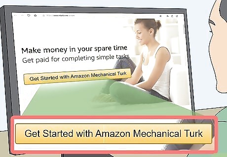 Join Mechanical Turk to earn extra money doing assorted tasks. Amazon’s Mechanical Turk program is a crowdsourcing platform. That means you do quick, random tasks like taking a survey or transcribing a receipt. They pay you a small amount of money for doing a good job. To sign up, visit https://www.mturk.com/worker. The pay is low for these tasks, so anticipate your earnings being more like extra spending money than a salary.