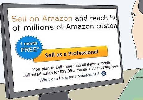 Set up an individual seller plan to sell less than 40 items per month. Before you can begin selling products on Amazon, you need to register as a seller. Amazon makes you pick an account plan when you register. The individual seller plan is the best option for anyone selling a limited number of items each month. As an individual seller, you list each item you have for sale through your seller portal without having to pay an upfront fee. Amazon charges $0.99 USD for every item sold through the individual seller plan. They also take additional referral and closing fees depending on how much the item costs. Fees differ depending on the category of item you sell. For example, the fees for home and decor items like pillows are about 15% of the selling price. Media like books and movies incur a $1.80 closing fee.
