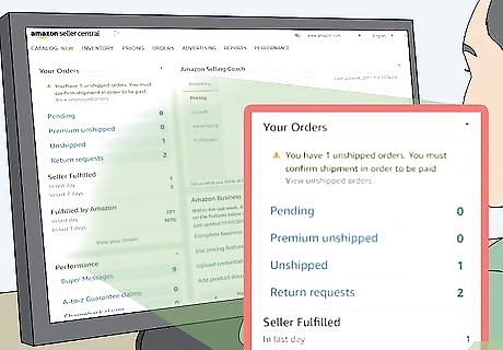 Ship the item yourself if you aren’t using Amazon fulfillment. You are responsible for shipping sold items to customers. Most individual sellers send their products through a parcel delivery service. Wrap up your item and take it to the closest shipping center. Take into account all of the shipping fees you have to pay to transport your products through these services. If you ship items yourself, you will need to check your seller portal page often to look for new orders, customer messages, and return requests. Amazon expects you to ship items within an estimated delivery date that you choose when listing the item. Some items, like books, need to be shipped within 2 days. You then have to notify Amazon through seller portal that you shipped the item.