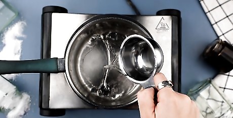 Heat a pan of water. You only need a little water, about ½ cup (120mL). Heat the water until it just begins to bubble. Kids should ask an adult for help handling the hot water. Distilled water gives the best results, but tap water should work fine. As you heat the water, its molecules will speed up.