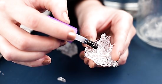 Protect the finished crystal with nail polish. Once your crystal is large enough, remove it from the solution and dry it. Brush a coat or clear nail polish onto all sides to prevent it wearing apart over time.