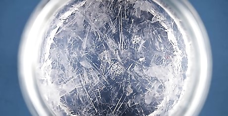 Move the jar to a safe place. Keep the container where animals and young children can't get to it. Here are some tips for choosing a location: To grow a lumpy mass of crystals quickly, keep the jar in the sun and/or keep a fan blowing near it on the lowest setting. These crystals may stop growing at a fairly small size. If you want a single, large crystal instead of a clump of crystals, keep the jar in a cool, shaded place. Keep it on a Styrofoam pad or similar material to absorb vibrations. (There's still a good chance you'll end up with a clump, but there should be larger individual crystals within it.) Epsom salt (and a few less common salts) will grow faster in the refrigerator instead of the sun.