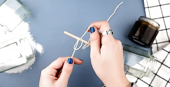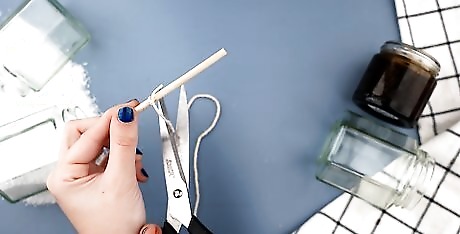 Tie a string around a pencil. The pencil should be long enough to lie across the top of the jar. You can use a popsicle stick or small stick instead. The tiny grooves and rough edges of the string provide a place for salt to latch on and grow. A fishing line won't work, since it's too smooth.