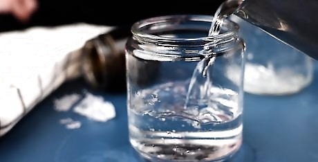 Pour the water into a clean jar. Carefully pour the hot water into a jar or another clear, heat-safe container. This should be as clean as possible, so nothing interferes with the crystal growth. Pour slowly and stop before the salt grains fall into the jar. If there are undissolved salt grains in the jar, the crystals might grow around those grains instead of your string. Since supersaturated solutions are very unstable, salt will come out of the solution when you disturb it. This means it will start to form crystals, which takes heat away from your solution.