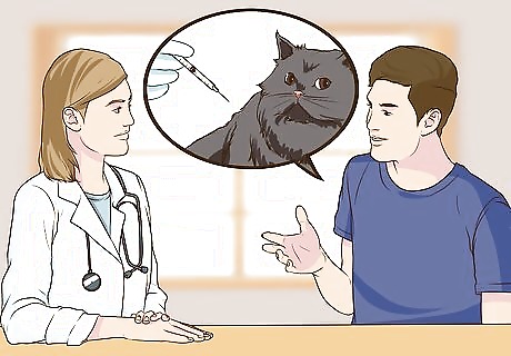Talk with your vet. Make an appointment to have your cat examined. After the examination, talk with your vet about the vaccinations that your cat currently has or needs. Ask them about their approach to vaccinations and boosters. Do they believe in spreading them out or lumping them together in combo shots? If you move to a new area, make an appointment with the new vet as soon as possible. They will be able to help you to register your cat with local officials. They can also provide advice regarding that vaccinations that your cat is required to get.