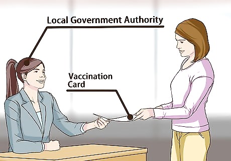 Follow the local laws. Each jurisdiction sets their own regulations regarding animal vaccinations. Your vet will be familiar with these rules. But, you can also contact local government authorities for more information. It is possible that you will need to send in a copy of your cat’s rabies vaccination every year, every three years, or less frequently depending on the area.