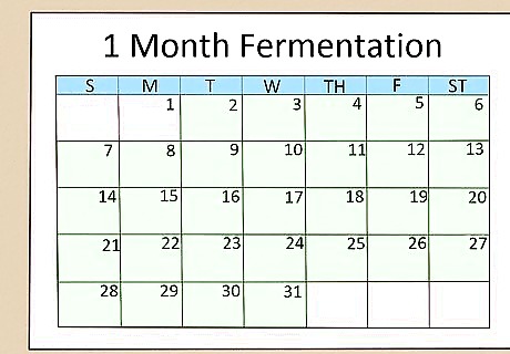 Let the wine age for at least one month. It's better if you can let it age for up to nine, during which time the wine will age and mellow, resulting in a much improved taste. If you used extra honey in your wine, it's better to age it on the longer side, or else it will taste too sweet when you drink it.
