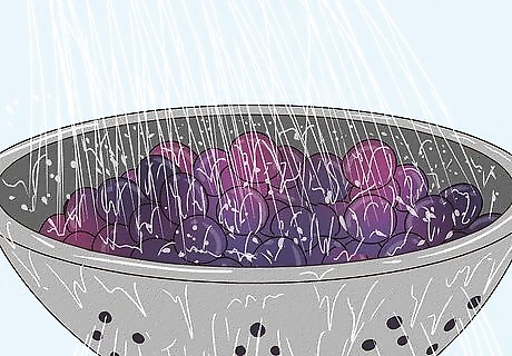 Clean the fruit. Take off the stems and leaves, and make sure the fruit doesn't have particles of dirt or grit. Rinse the fruit thoroughly and place it in your crock. You can peel the fruit before crushing, but much of the flavor of the wine will come from its skin. Peeling it will result in a much milder wine. Some winemakers choose not to wash the fruit before crushing. Since fruit has natural yeasts on its skin, it's possible to make wine using only the yeast from the fruit's skin and the air. However, washing the fruit and controlling the yeast you add allows you to ensure that the flavor of the wine will be to your liking; allowing wild yeast to grow can produce foul flavors. If you're up for an experiment, you could make two batches of wine, one with controlled yeast and one with wild, to find out which you like best.