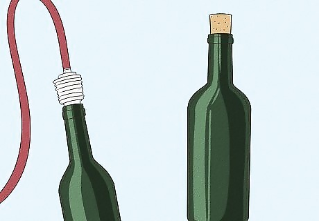 Bottle the wine. To prevent the wine from catching a bacteria that could cause it to turn to vinegar, add a Campden tablet to the mixture as soon as you remove the airlock. Siphon the wine into your clean bottles, filling them almost to the top, and cork them immediately. Allow the wine to further age in the bottles or enjoy it immediately. Use dark bottles to preserve the color of red wines.