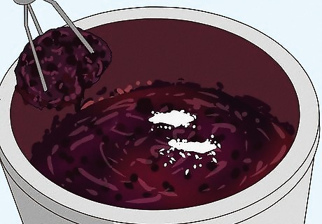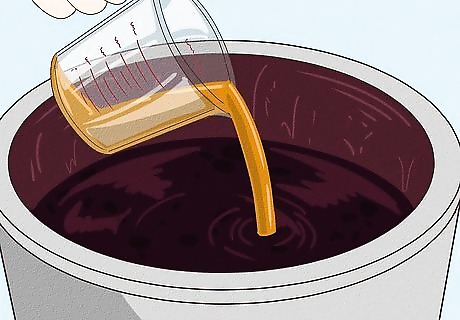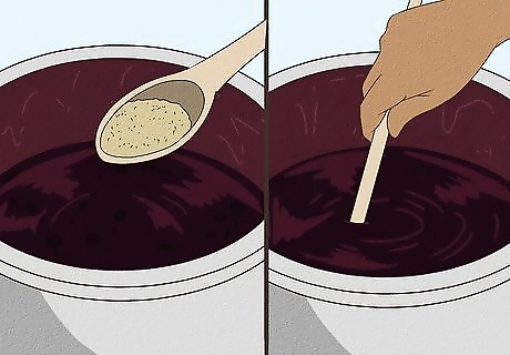Stir in the honey. Honey provides food for the yeast and sweetens your wine. The amount of honey you use will directly affect the sweetness of your wine. If you prefer sweeter wine, add more honey. If you don't like it as sweet, limit your honey to 2 cups. Take the type of fruit you're using into account as well. Since grapes have a high sugar content, you don't need to add a lot of honey to grape wine. Berries and other fruits with lower sugar content will need a little more honey. You can add sugar or brown sugar instead of honey if you'd like. You can always add more honey later if your wine doesn't come out as sweet as you like.