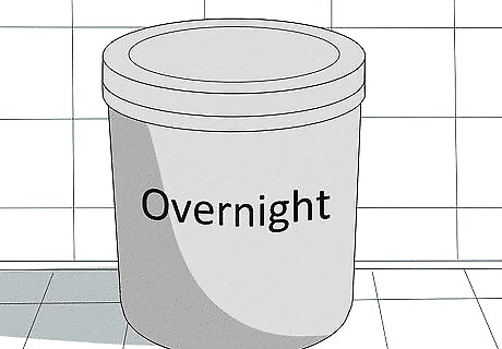 Cover the crock and store overnight. It's important to use a cover that will keep bugs out but allow air to flow in and escape the crock. You can use a crock lid designed for this purpose or stretch a cloth or t-shirt over the opening and secure it in place with a large rubber band. Place the covered crock in a warm area with a temperature around 70 degrees overnight. Putting the crock in a cool place won't facilitate the growth of the yeast. Storing it in a place that's too warm will kill the yeast. Find a good in-between place in your kitchen.