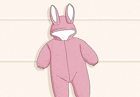 Choose a fuzzy onesie for an authentic look. A bunny onesie is probably the easiest option. The ears are already on top of the head like a Labubu’s, and they’ll usually be about the right shape. Other animals might work too—like a lamb or bear—but you might have to reposition the ears. You can also find fuzzy onesies that aren’t animal-themed, so you'll need to add ears to these. If you choose an animal onesie, try to find one without a nose or eyes on the hood, since that will probably take away from the resemblance to a Labubu. If you’re making a Labubu costume for a baby, finding a fuzzy onesie should be especially easy!
