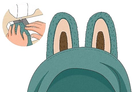 Use cardboard or wire to make the ears stand up on a bunny onesie. If you’re using a bunny onesie, use a seam ripper to remove the ears from the costume. Trim the ears if they're too long—they should be about half as tall as the head. Insert a piece of cardboard or a wire form to give the ears some structure. Then, stitch the sides back together if you trimmed the ears, and sew the ears back onto the costume. You may be able to hot glue the ears to the hoodie, but test the glue in an inconspicuous spot first to make sure it won’t damage the fleece. You can also hot glue the ears to a headband, then wear that over the hoodie. If you’re using another animal, you may be able to remove and reposition the ears. If not, remove the existing ears and make your own out of cardboard or Sherpa.
