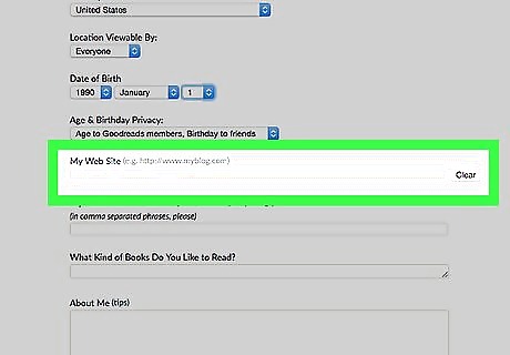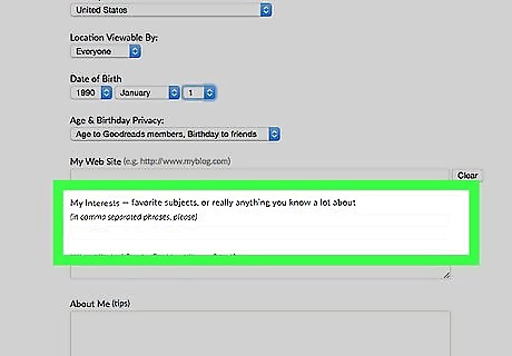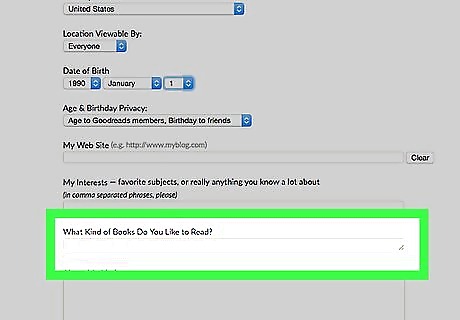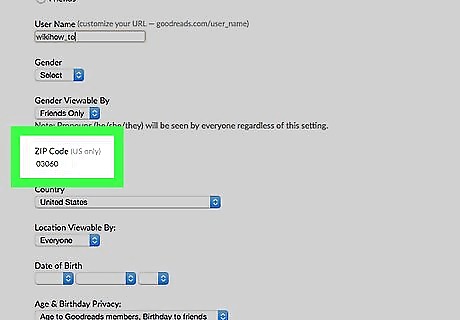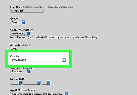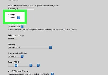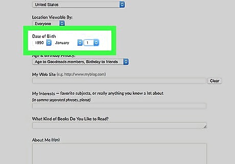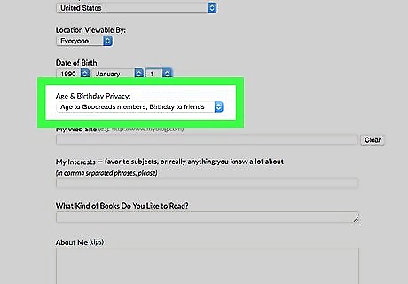 Fill out your date of birth if you'd like. Keep the drop-down boxes blank to avoid displaying this information if desired.The age will be determined by the date you've filled in, within these boxes of your date of birth. If you are under age 18, regardless of what you set your audiences to be, the Goodreads system keeps your profile private. This is so that little to no information is given to those who don't have your URL, to protect your privacy.