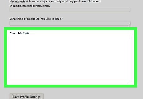 Describe yourself in the "About Me" section. What you share is up to you! You can use some HTML formatting in there (such as to mention books in italics).