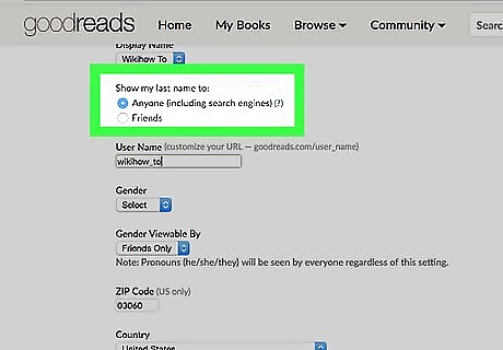 Click a radio checkbox between the two options below the "Show my last name to" label. Your choices include "Anyone (including search engines)" and (just Goodreads) "Friends". Most people want to set this to just "friends" for privacy's sake, but you have to choose who you want to see this data.