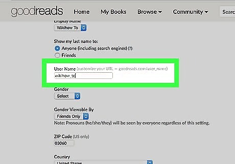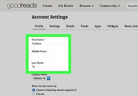 Fill in the name fields. Although the First name field is mandatory for all situations, they also include spots for your middle name and last name (if you'd like to give them out to the public and/or people who are friends with you on Goodreads).