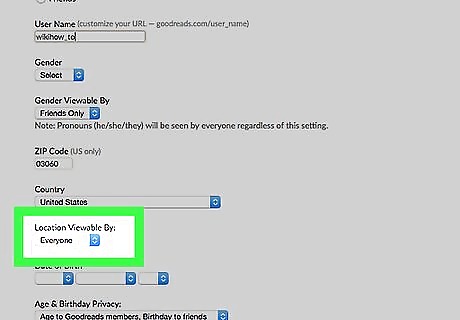Select the audience to which your location is shown. You have three choices. "Everyone" will show your location to everyone who has your custom personalized URL, "Friends" will give out this information to only the friends you've made on Goodreads, and "No one" will make this information private to you only.