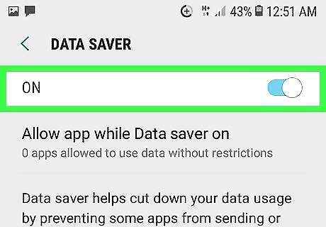 Control how individual apps use mobile data. If you're running into trouble with certain apps consuming too much data in the background, you have a few options for gaining control over their usage: You can prevent all apps from using mobile data in the background by enabling Data Saver mode. To turn this on, tap the back button to return to the Data usage screen, select Data Saver, and then toggle the "Use Data Saver" switch to On. To prevent an app from using mobile data in the background, go to Settings > Apps & notifications (or Apps), select the app, tap Mobile data, and then toggle the "Allow background data usage" switch to the Off position.